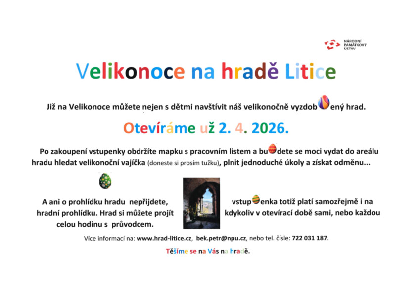 Navštivte náš hrad o Velikonocích, zakupte vstupenku na okruh Hradem krále Jiřího a kromě prohlídky se vydejte hledat i velikonoční vajíčka. V pokladně obdržíte mapku, pracovní list a na závěr odměnu.